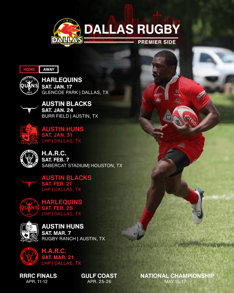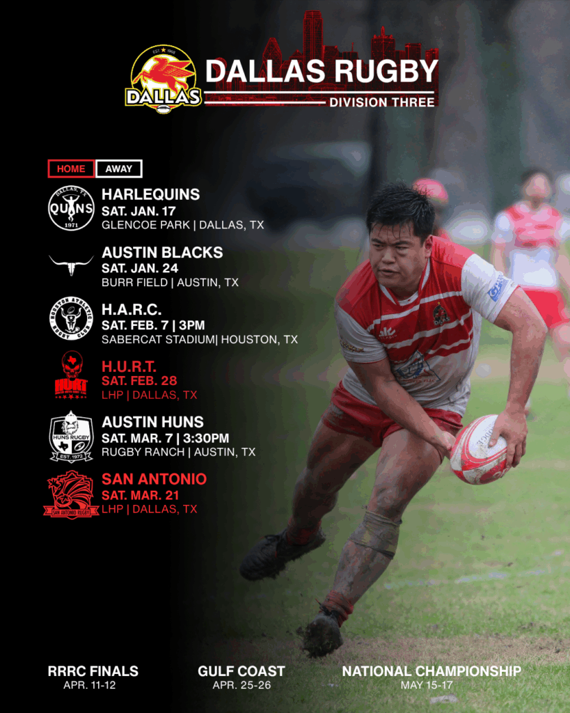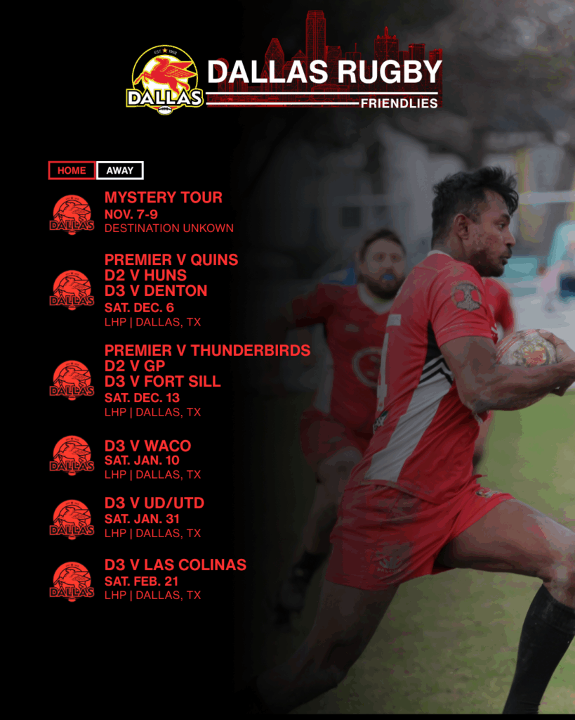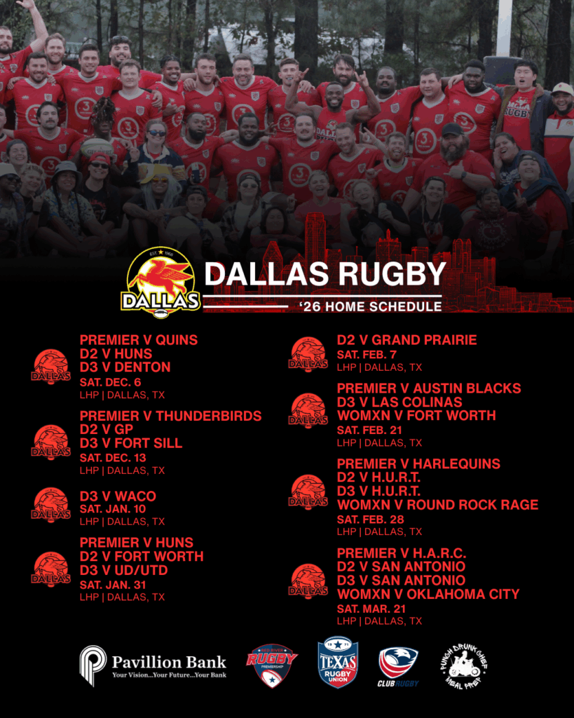 Staying up to date with Dallas RFC has never been easier! click the button below and add our calendar to yours, this way you can make sure you don’t miss out on any action ON and OFF the field.